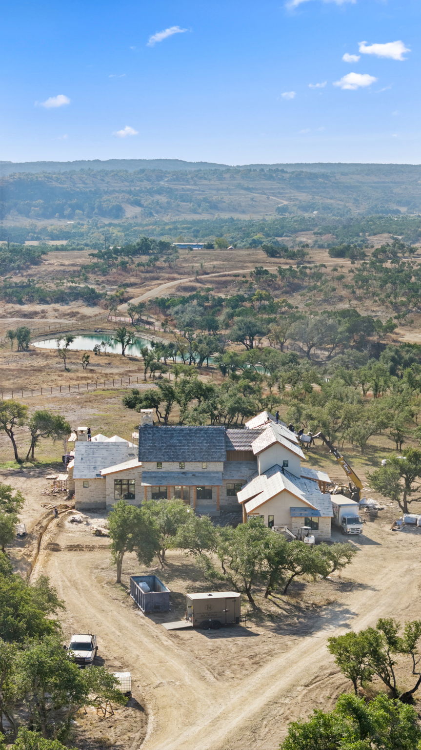 Modern Texas living with soul. Now underway, this Canyon Custom Home rests on 15+ rolling acres with a scenic pond, inside the gated Ranches at Dripping Springs. An inviting front courtyard welcomes you in, while a spacious 3-car garage provides room for vehicles, gear, and everyday ease.