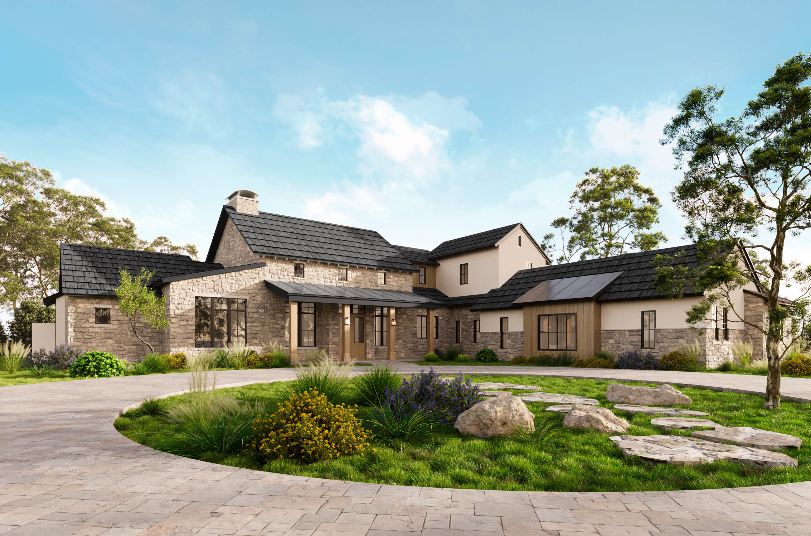 Modern Texas living with soul. Now underway, this Canyon Custom Home rests on 15+ rolling acres with a scenic pond, inside the gated Ranches at Dripping Springs. An inviting front courtyard welcomes you in, while a spacious 3-car garage provides room for vehicles, gear, and everyday ease.