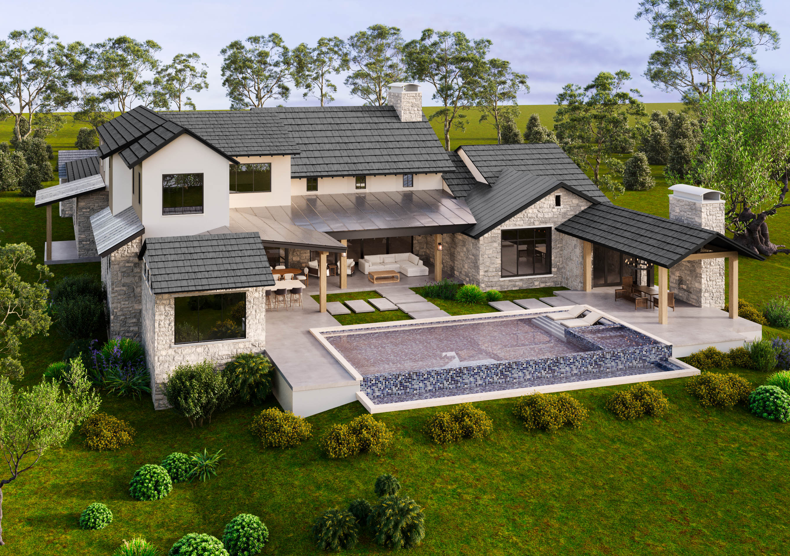 This 4-bed, 4.5-bath floor plan allows room to breathe—with multiple living areas, a quiet office, and a must-see primary suite, balancing beauty and function. Out back, it’s all about slow living: a resort-style pool, outdoor shower, full summer kitchen, and wide-open Hill Country views for endless memory-making. Timeless, elevated, and full of character—brought to life in the 3D rendering photos shown here.