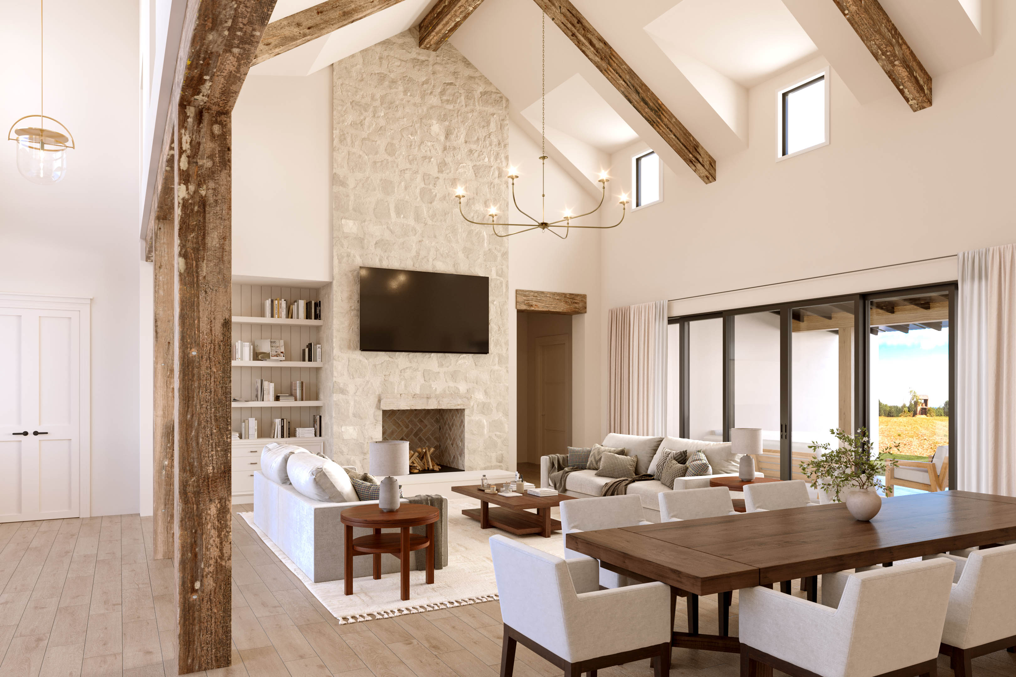 With over 5,000 square feet of thoughtfully laid-out space, the home features hand-hewn beams, wide-plank floors, and designer-curated finishes that bring depth and texture at every turn.